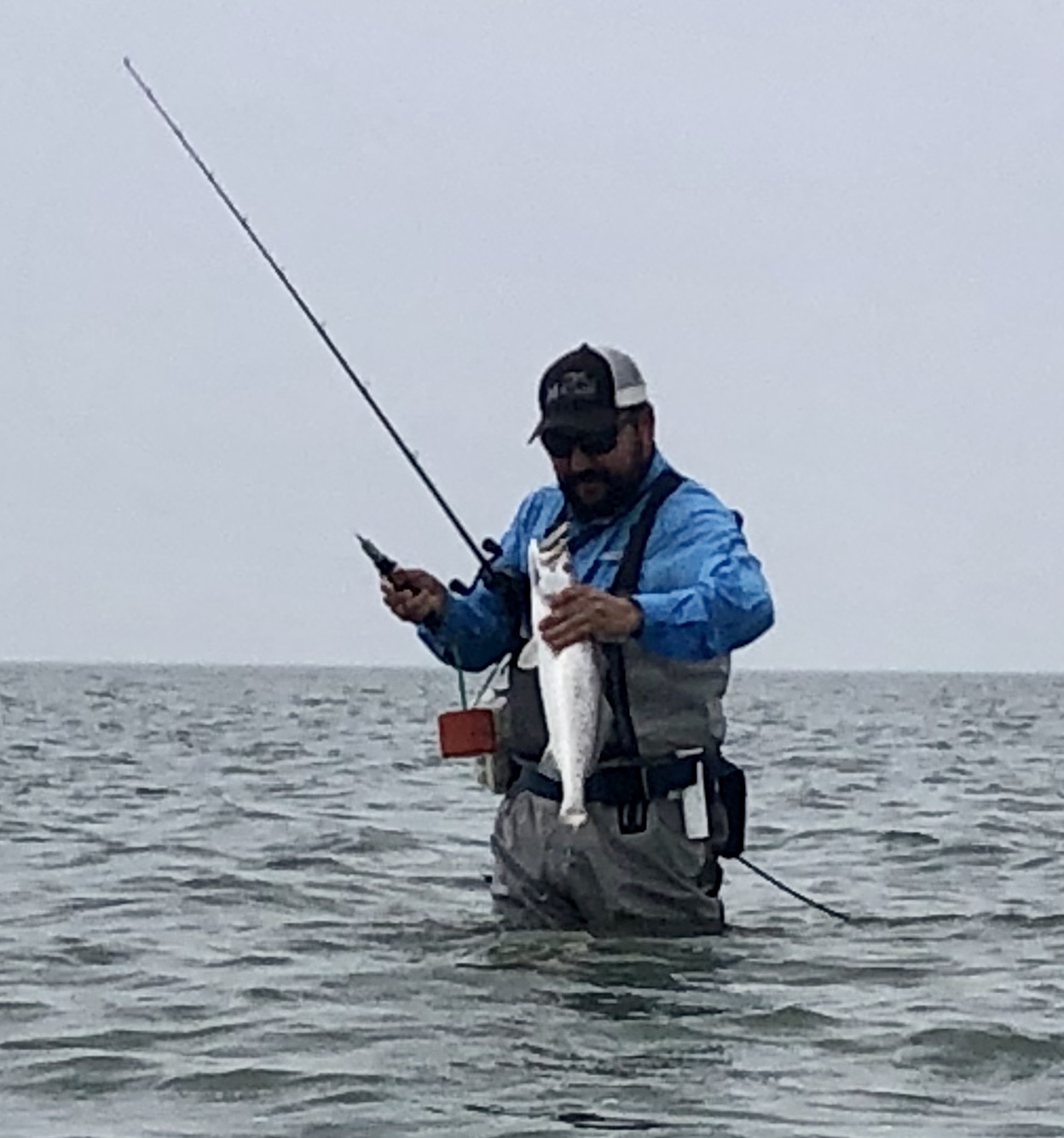 We found a solid trout bite over knee to thigh deep oyster shell. Throwing a variety of baits from DSL’s plum/chart, chicken of the c, as well as Softdine XL’s black/green and chartreuse/silver.
