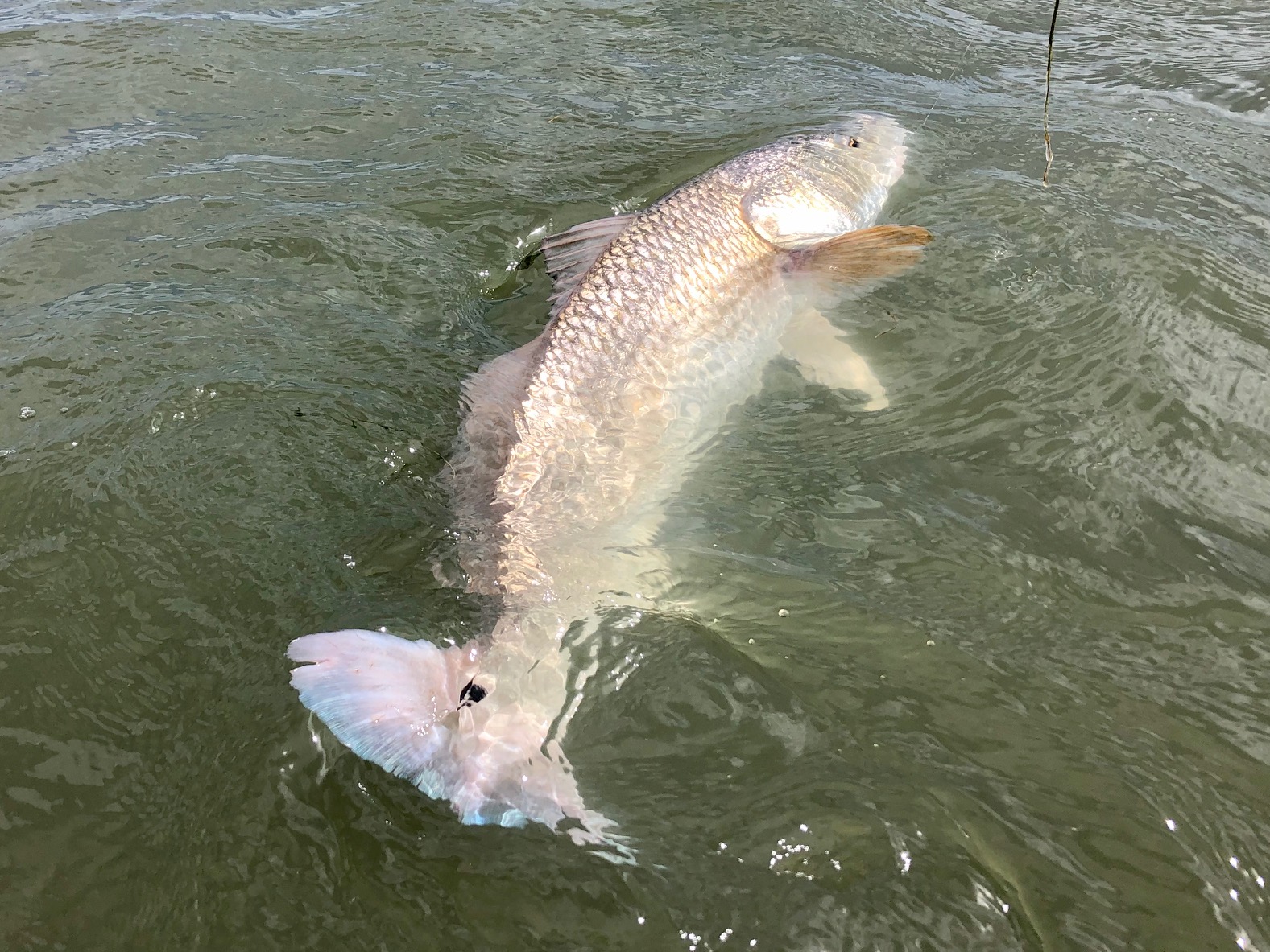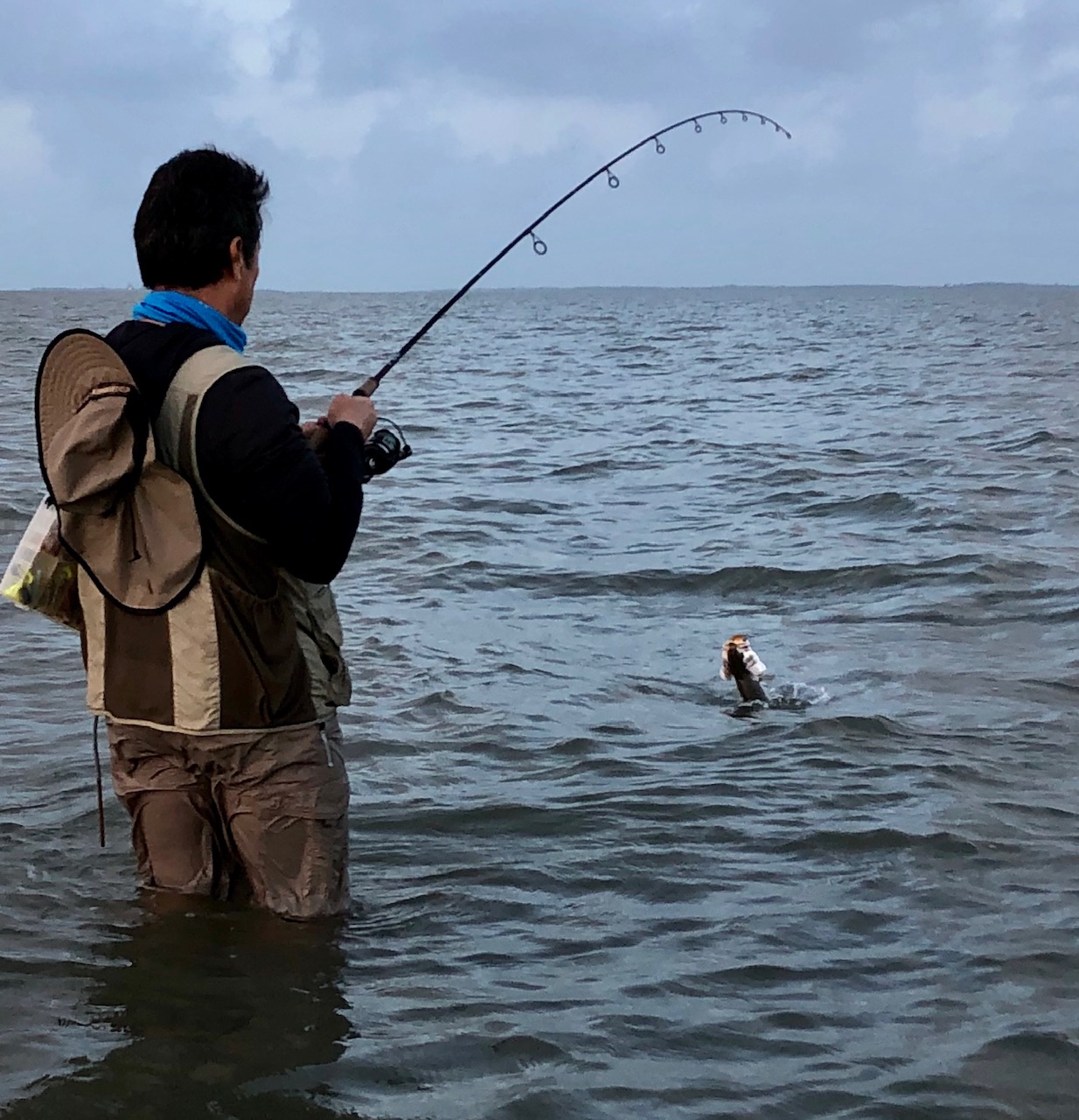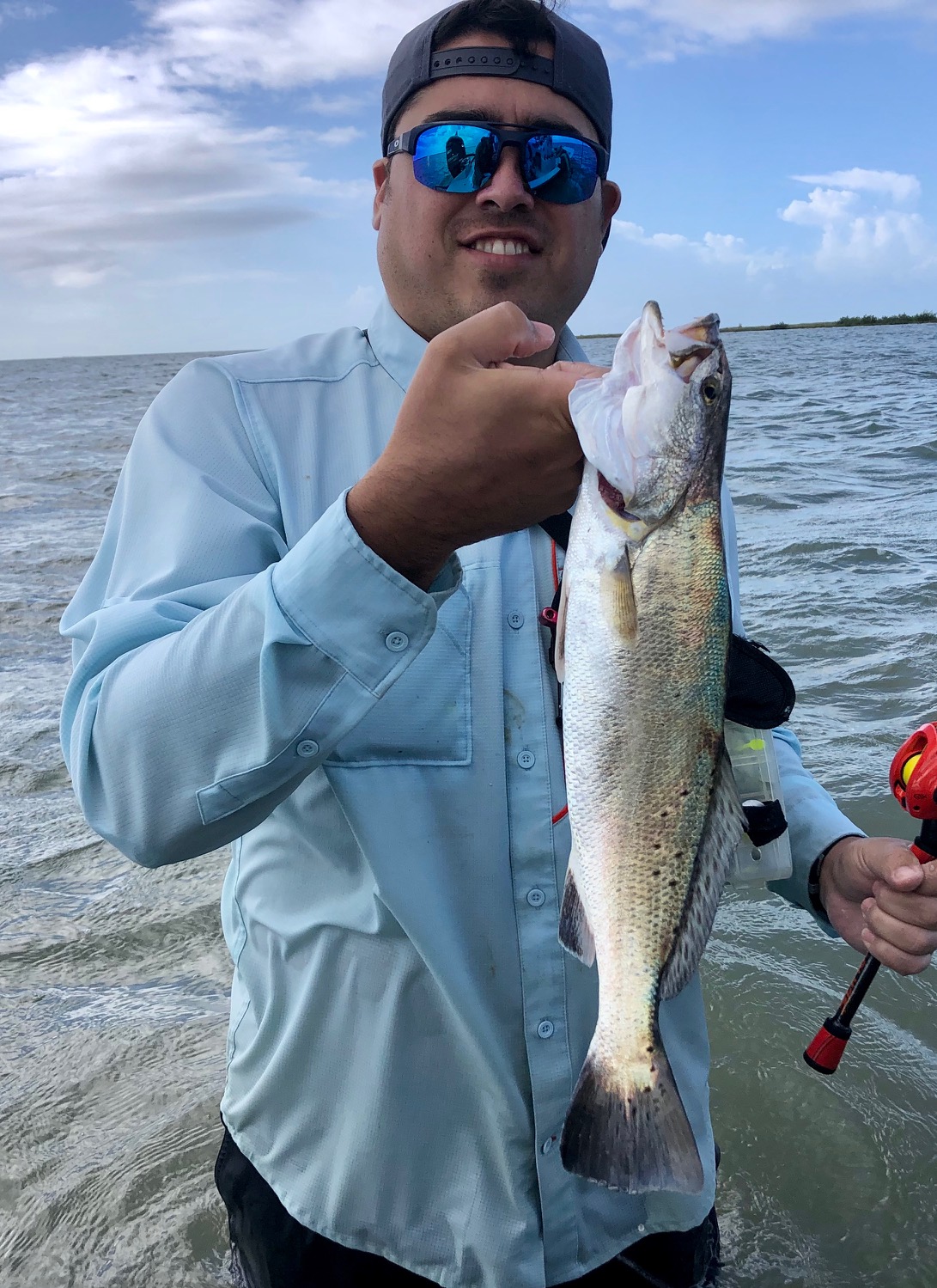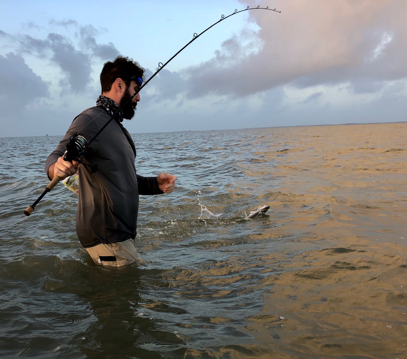 It was a pretty consistent bite before sunrise, there were some smalls mixed in, but the better fish were 17-19”. Then shortly after sunrise we started playing musical chairs with the thunderstorms. Finally settling in on a windward bank of sand/grass for some redfish action!
