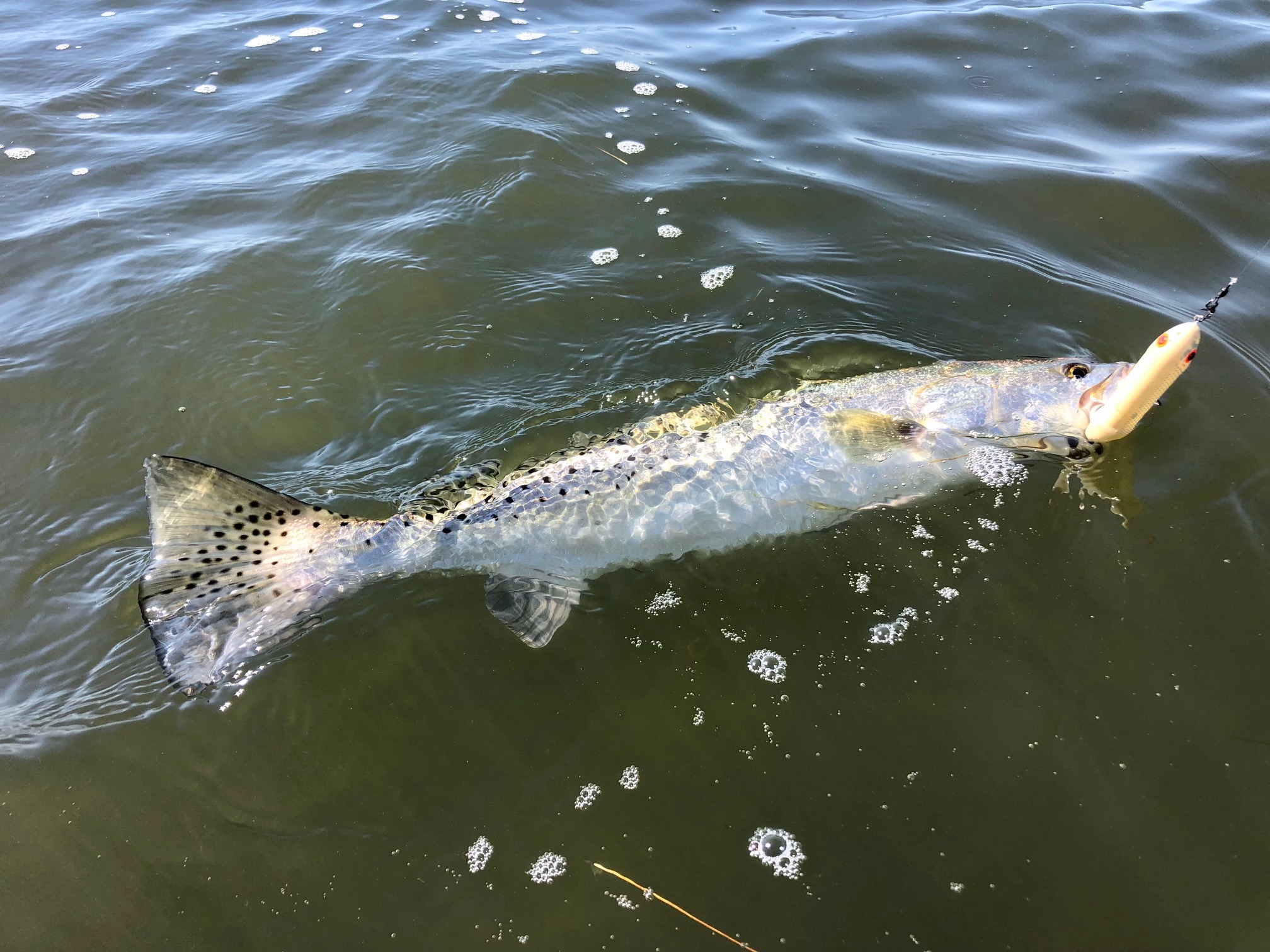 After a bite of lunch trout and redfish could be found throwing topwaters and Down South Lures super natural working knee deep sand pockets. All our fish were released to fight another day and were found in big rafts of finger mullet.