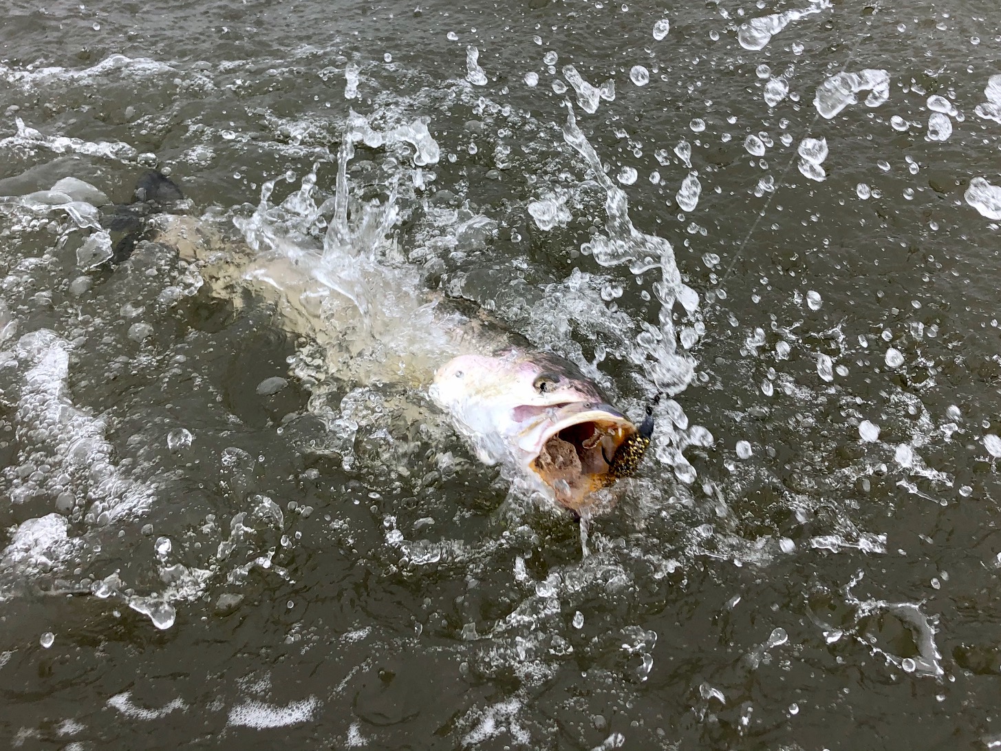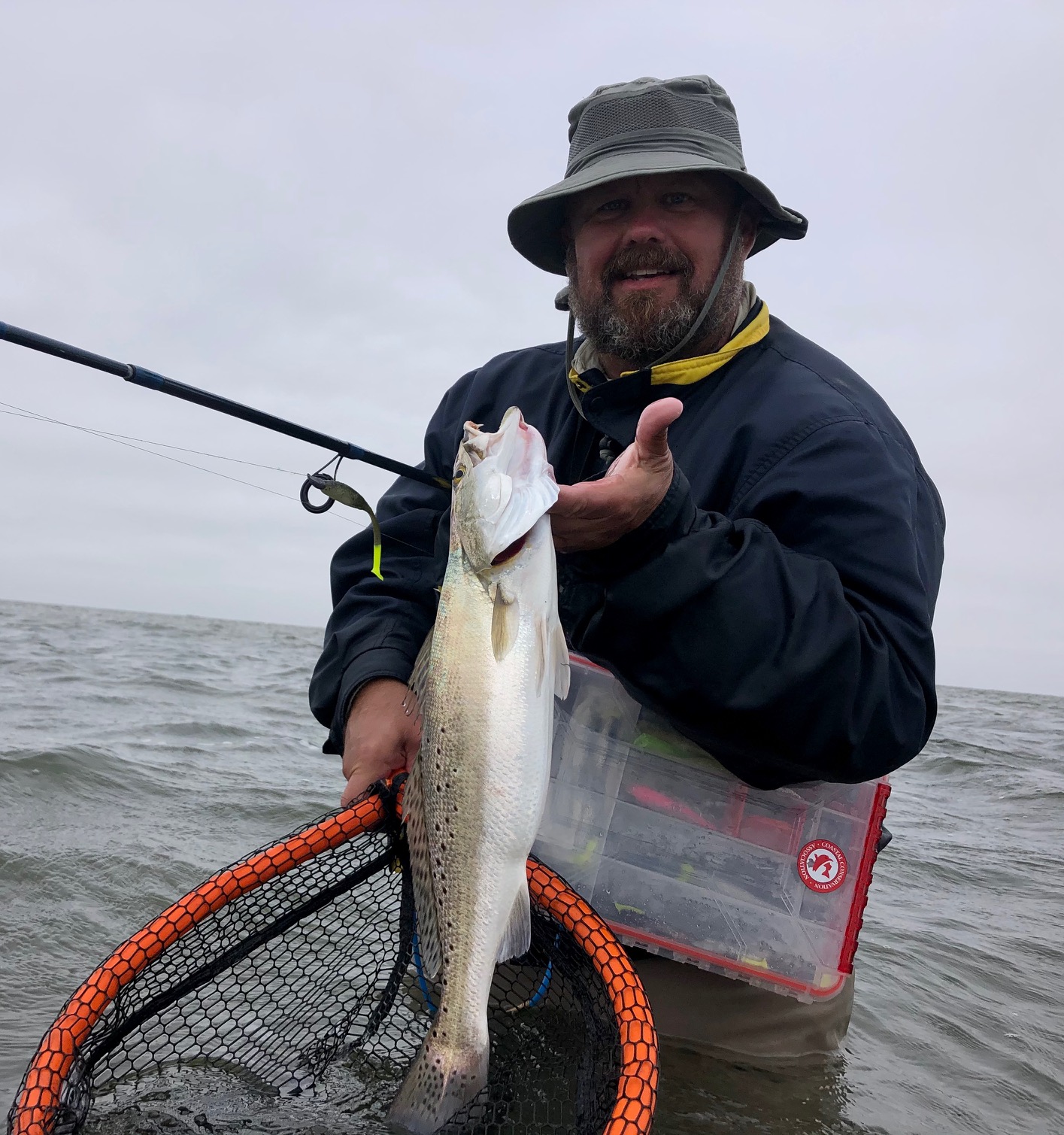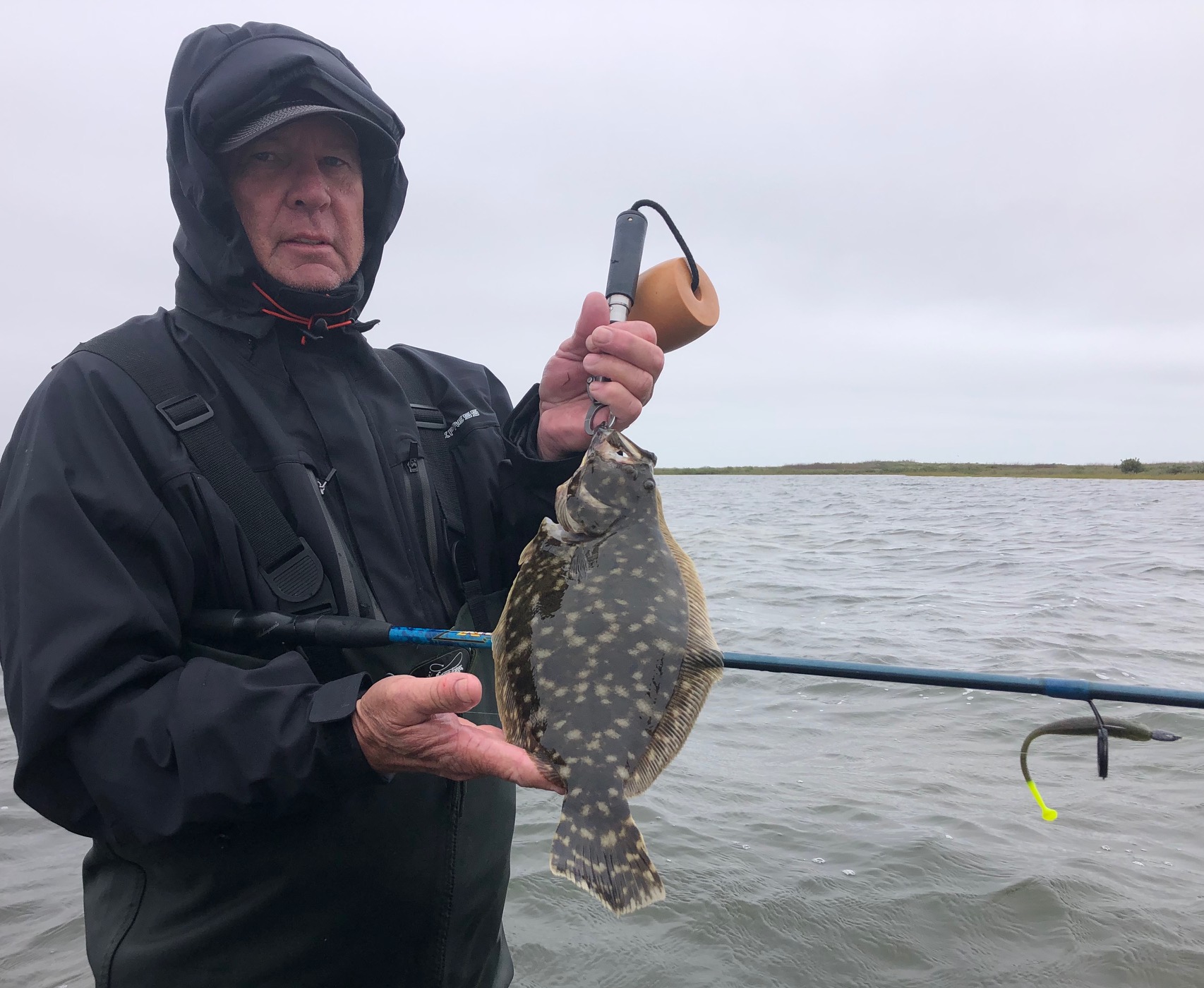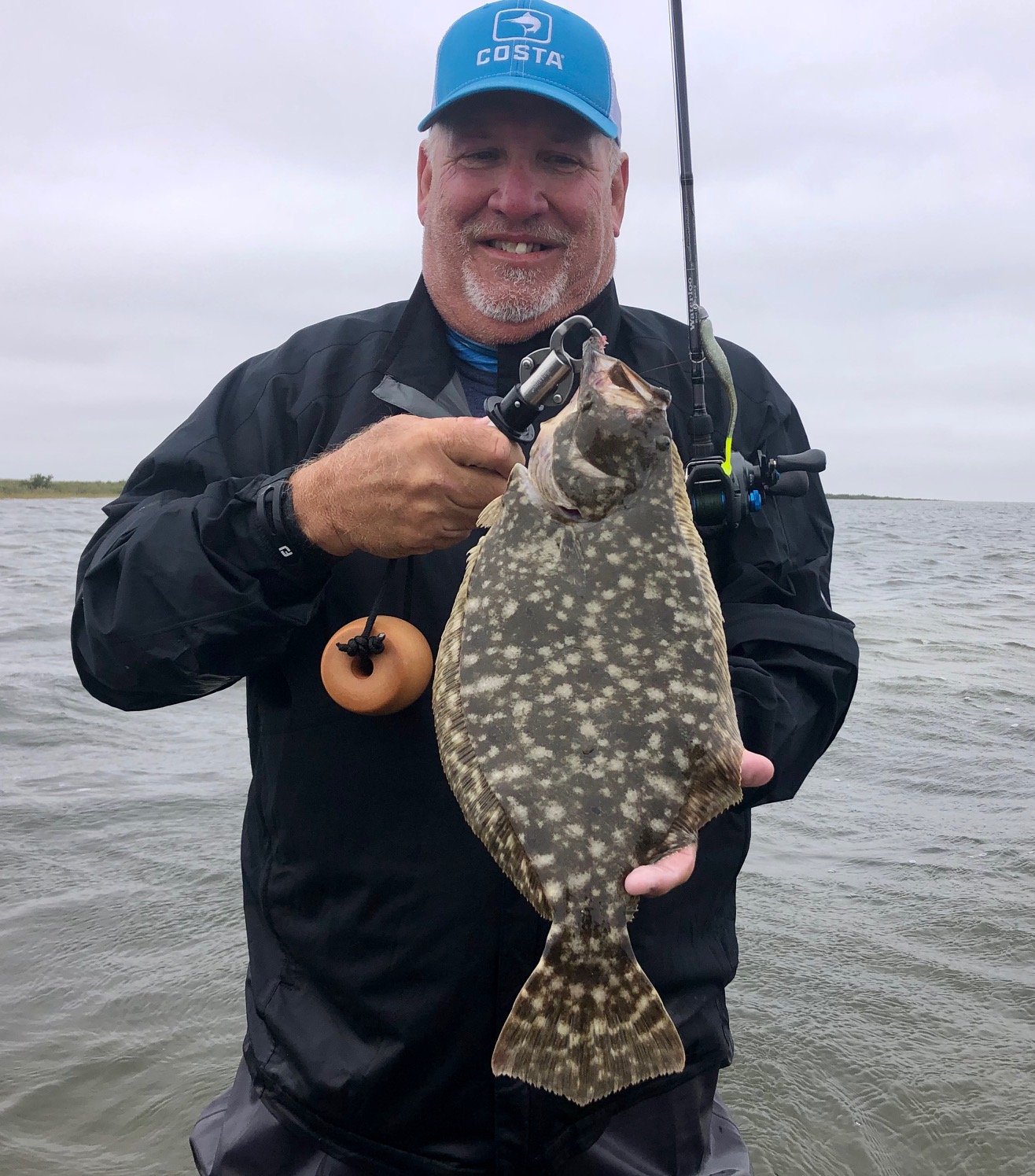 Today we didn’t find any big trout, but some solid 3# fish, along with a couple nice flounder. Our top baits were DSL’s chicken of the c, purpatraitor, and purple reign. We managed a few bites on dirty tequila and magic grass. All our fish were caught on windward banks in thigh deep water.